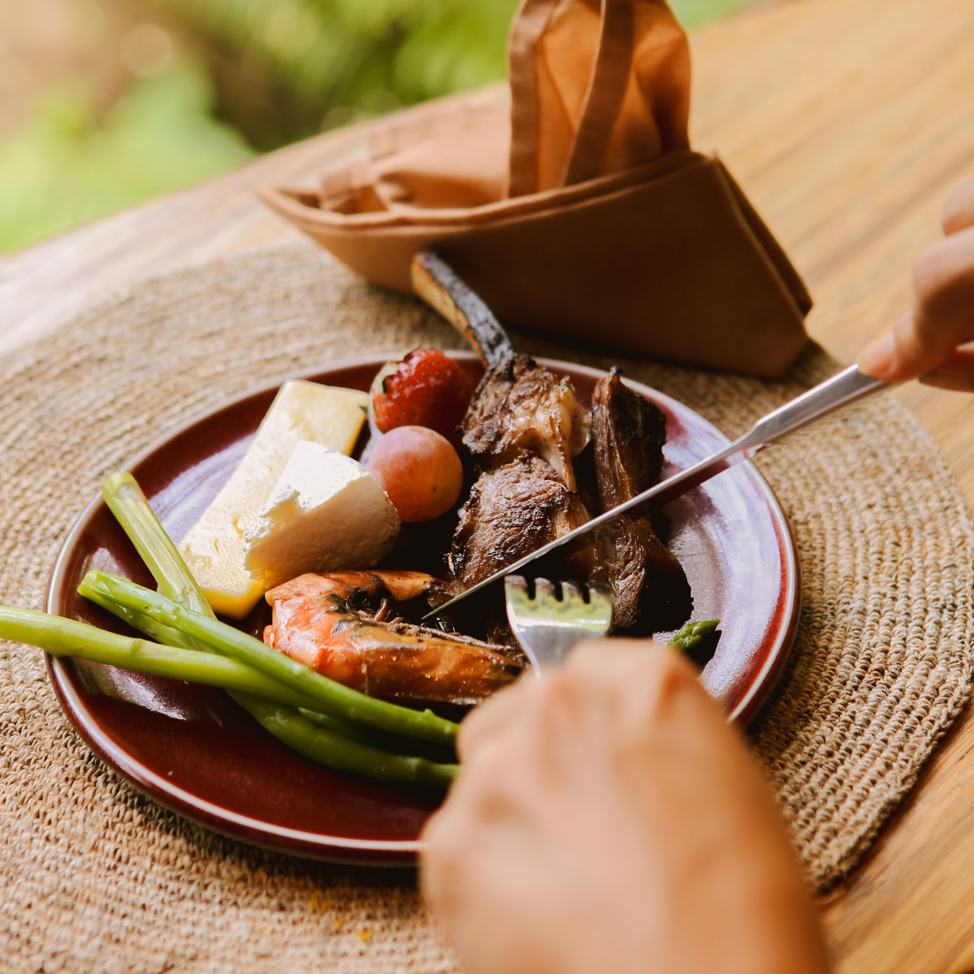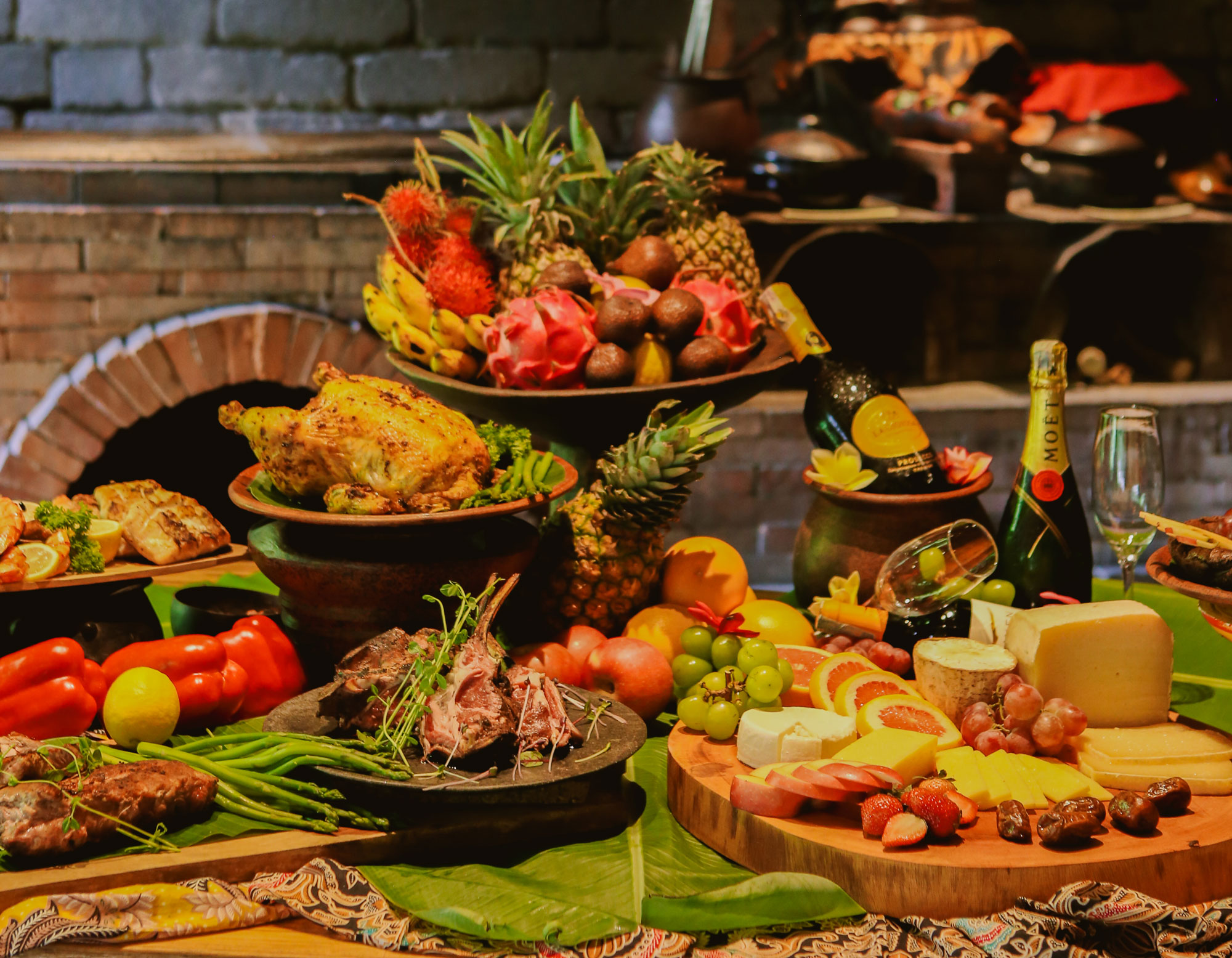 A relaxed riverside celebration. “Festive Flow” bottomless brunch with tropical salads, wood-fired savoury specialties, fresh fruits, and bright desserts.